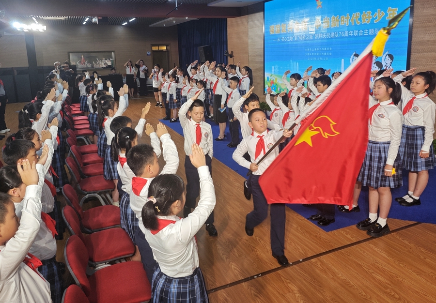 沪黔少先队庆祝建队76周年联合主题队课活动在黄浦区卢湾一中心小学举行 摄影:陶磊