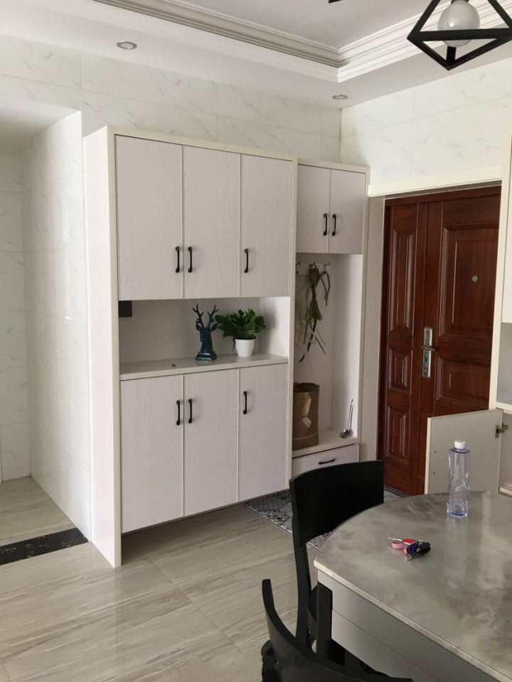不过定制的鞋柜上方没有置顶,以后顶部的清洁工作就比较多了,因为容易堆积灰尘,但是整个玄关的整体感很强。